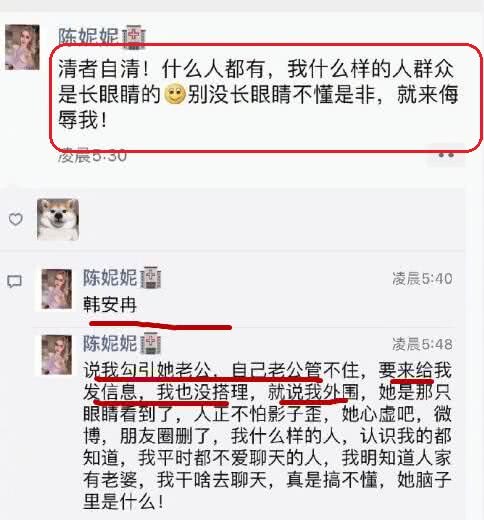 巧的是当事人陈妮妮并不这样子说,他透露出来的消息就是指韩安冉自己管不住自己的老公,而且凭什么说自己是外围女呢!